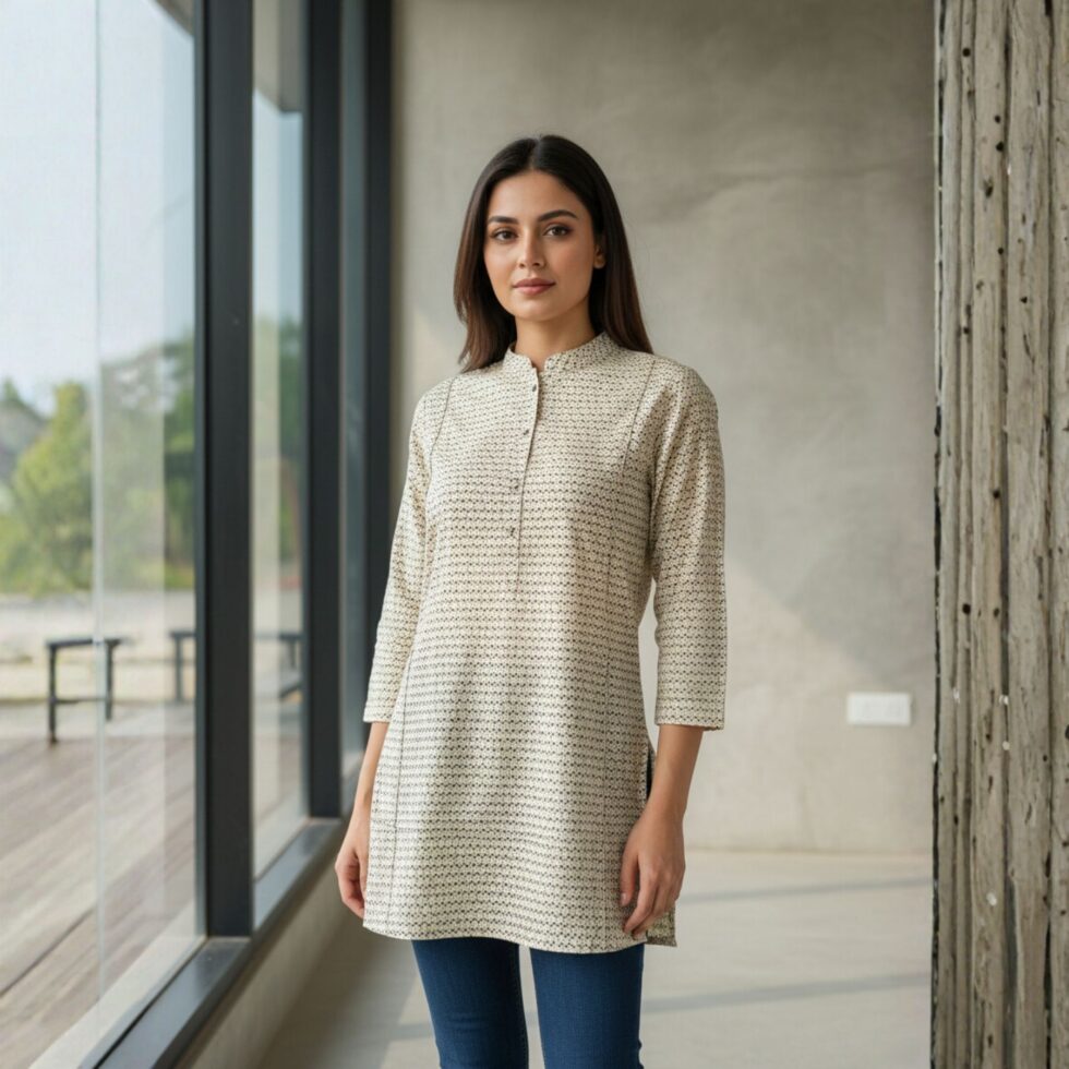Elevate your everyday wardrobe with our beautifully crafted Mandarin Collar Printed Women’s Kurti Tunic. Designed for the modern woman who values comfort and style, this tunic is an essential addition to any high-end clothing collection.